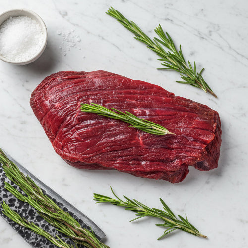 Our 100% grass-fed, organic Elk Flank Steak is lean and flavorful, perfect for marinades and quick searing. A classic elk meat cut for versatile cooking.